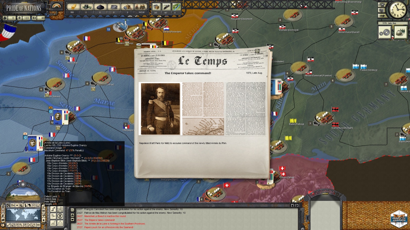 The Franco-Prussian War 1870-1871 is an expansion for Pride of Nations, a turn-based historical strategy game set in the colonial era of the 19th century, where the player takes control of a country and guides it through industrialization, military conquest, and colonization.
