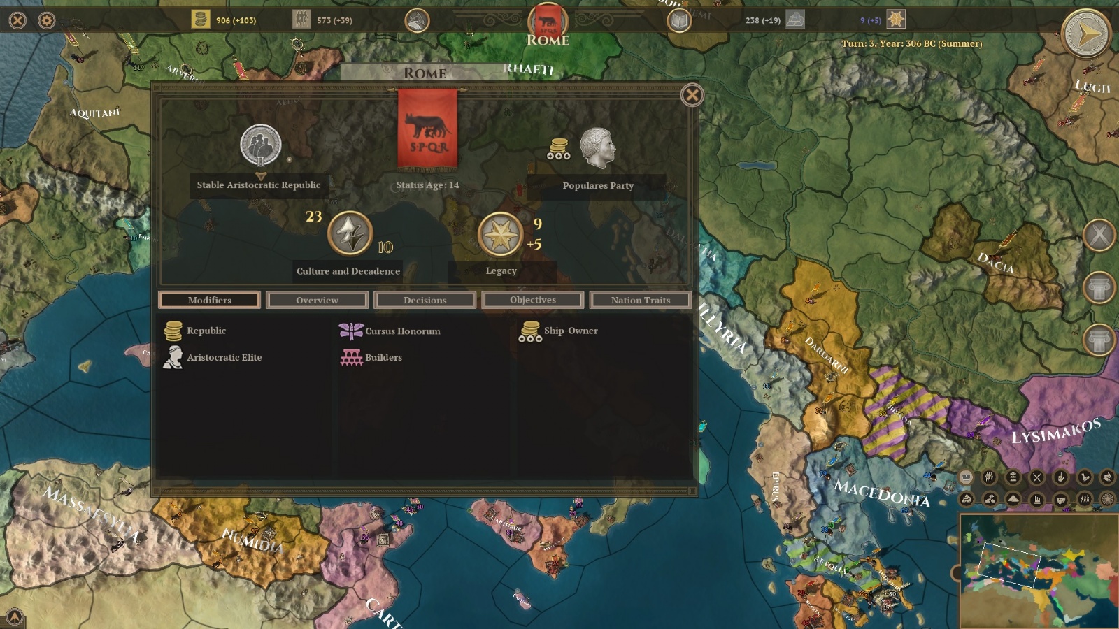 Expand your dominion through wars of conquest and make your culture a beacon of light, but be careful though. The risk of Decadence is not trivial. Many civilizations have collapsed for not having seen in time the signs of impending crisis. The older your empire, the more challenges will lurk in the shadows. Just expanding your borders without carefully shaping your form of government and culture won’t be the wisest of strategies.