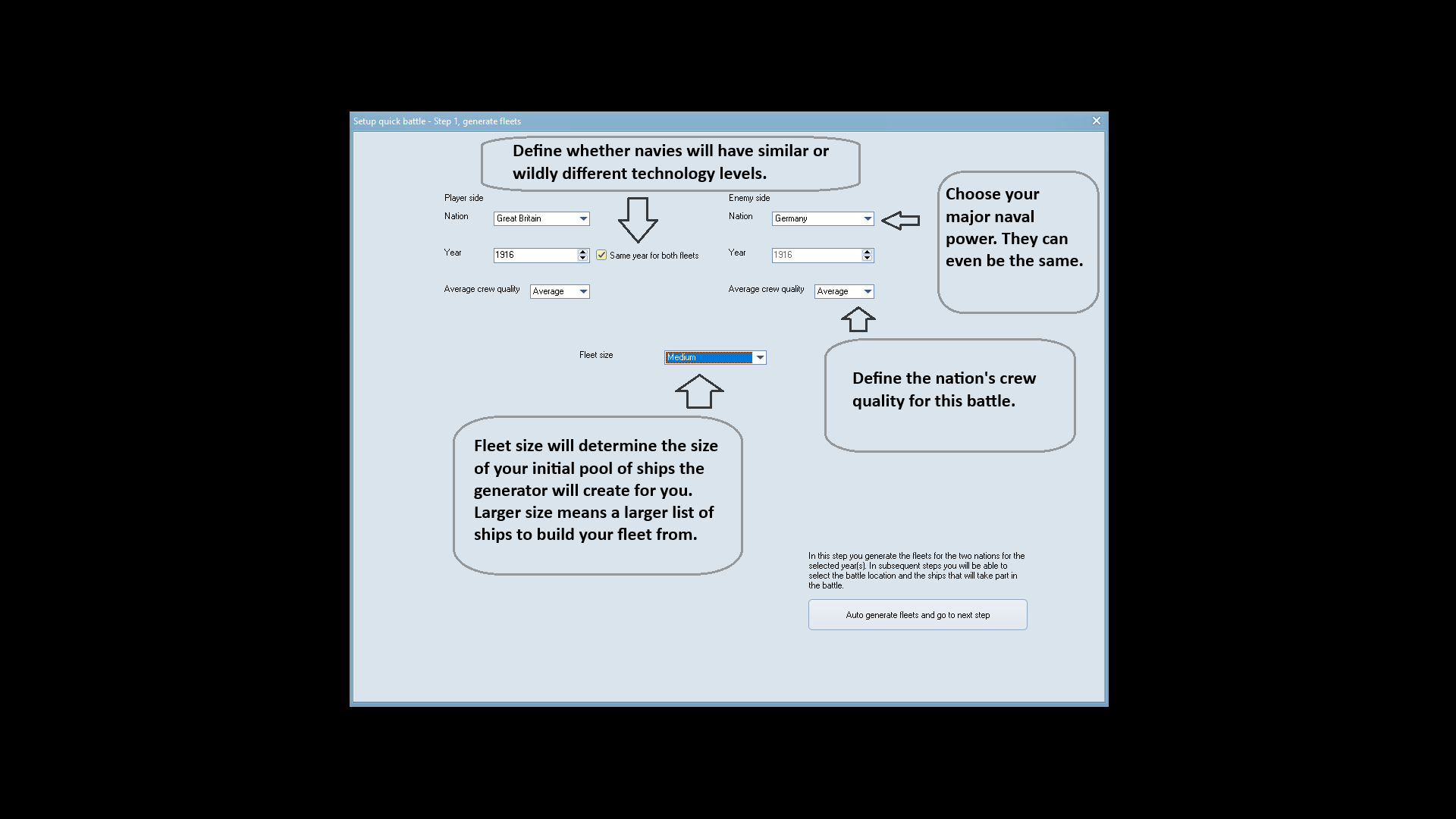 • Jump Straight Into Combat: Quickly set the parameters for your naval engagement and let the AI generate a suitable battle for you to jump in and play.