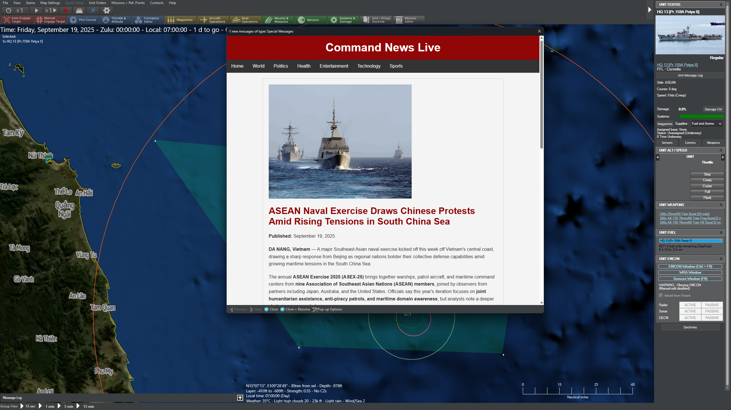 Tides of War is a new six-scenario campaign that introduces a new continuous losses system for Command: Modern Operations, plunging players into a high-stakes confrontation in the South China Sea where diplomacy, deterrence, and escalation collide.
