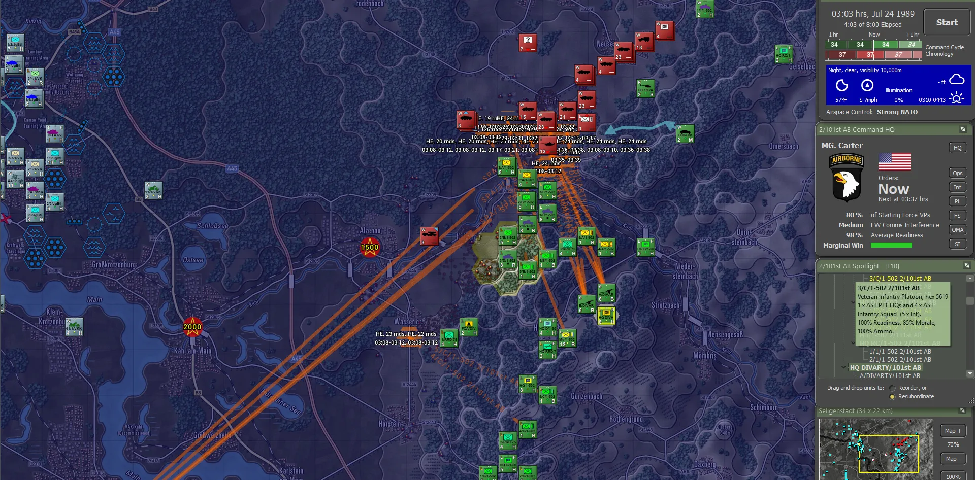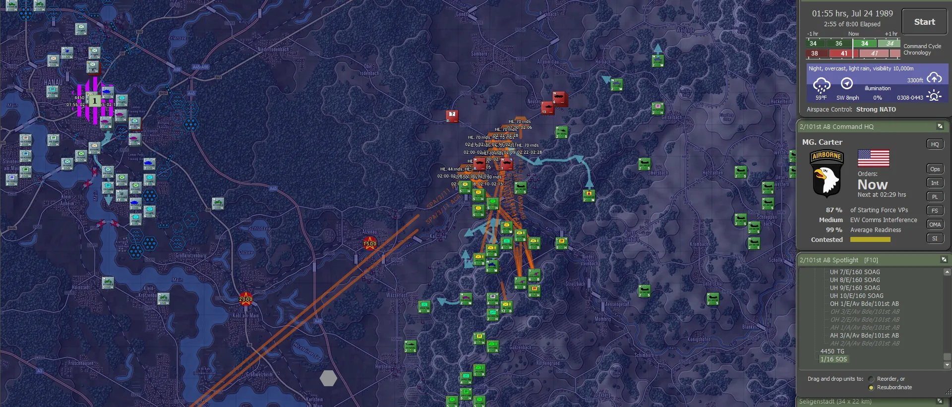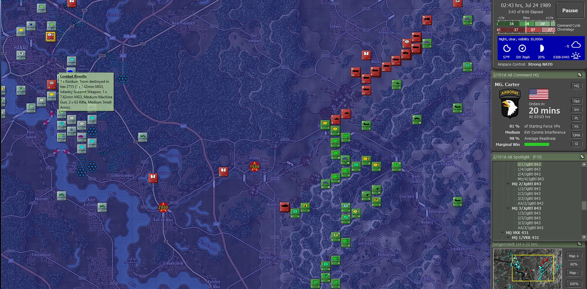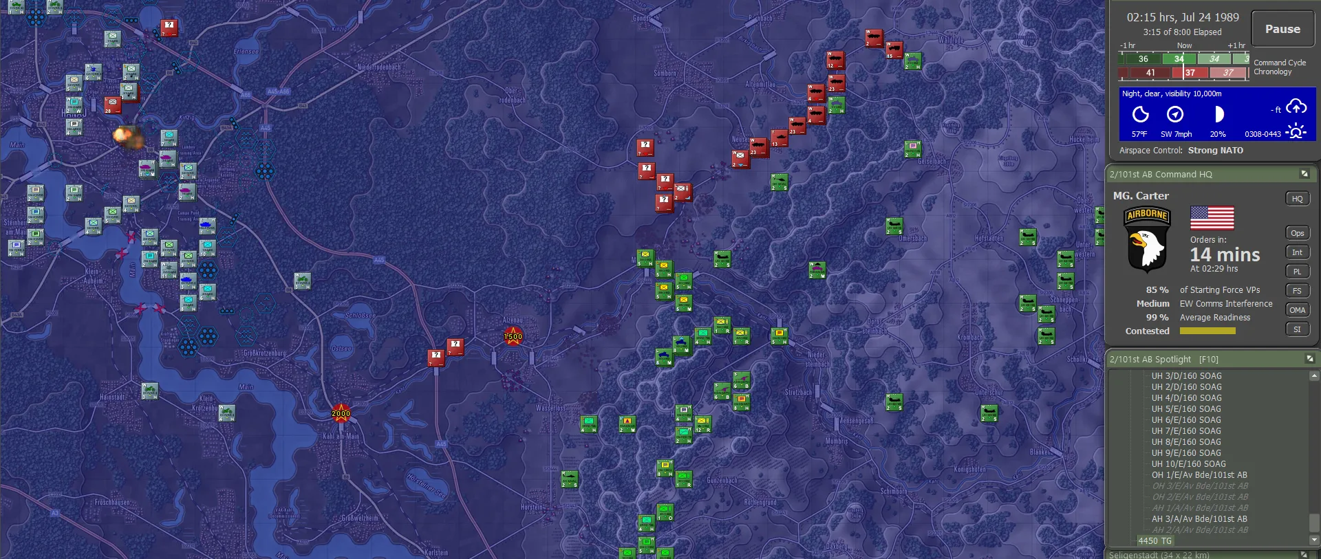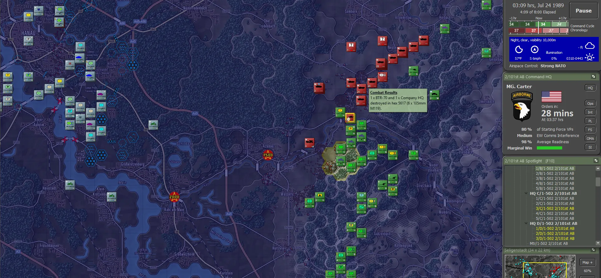 It turned out the Germans actually carried their fair share of the fighting, though this was not visible to the 101st. Between the two forces, including 56 Claims from the Apaches, 736 enemy sub-units had been accounted for, set against total sub-unit losses of 144. For NATO definitely not a gross result. And a brilliant day for the 101st!