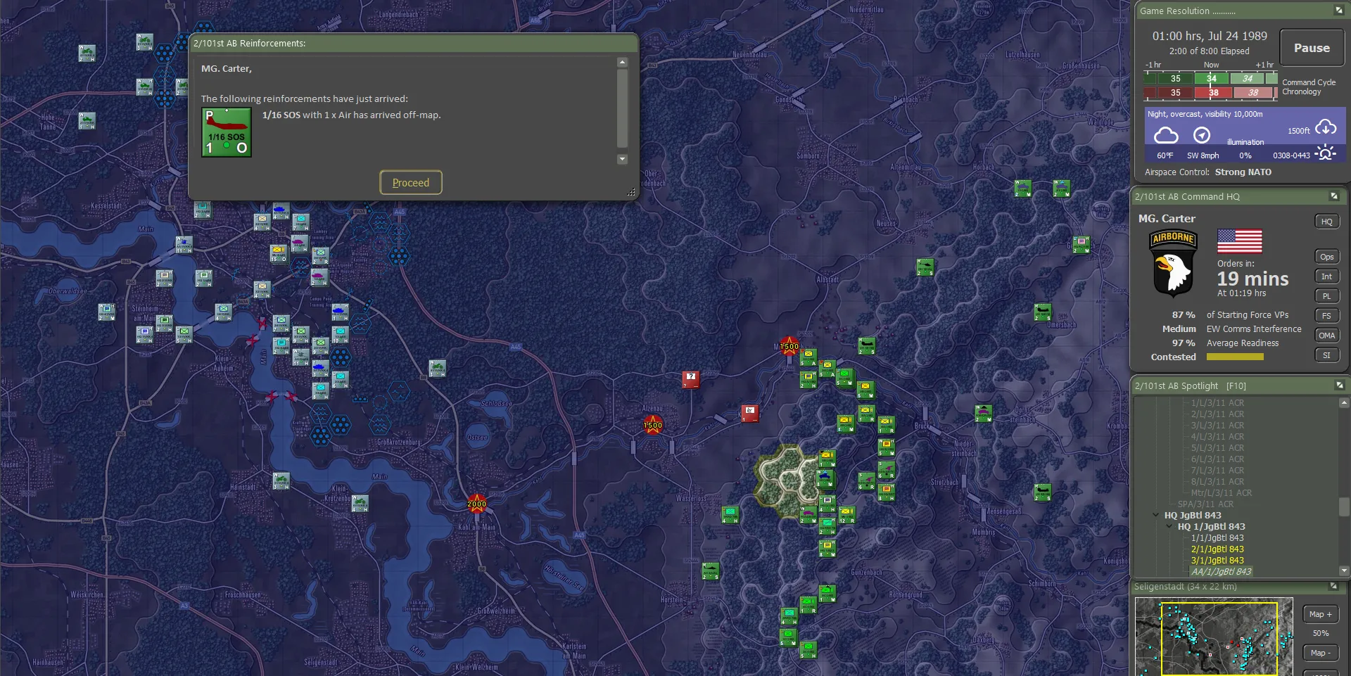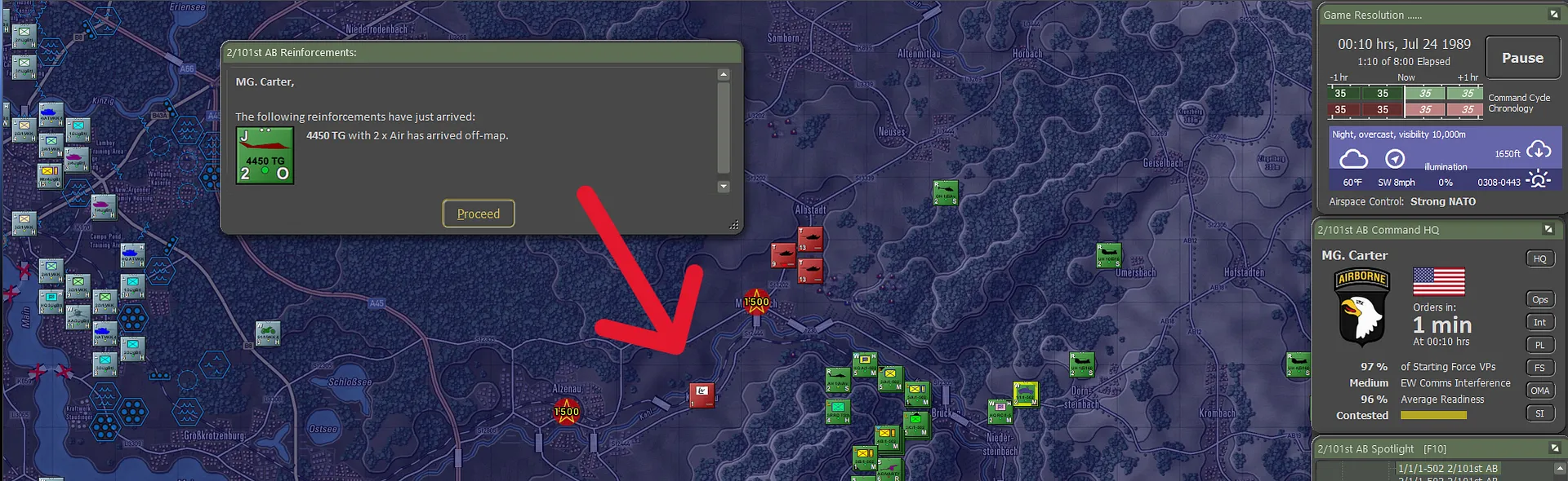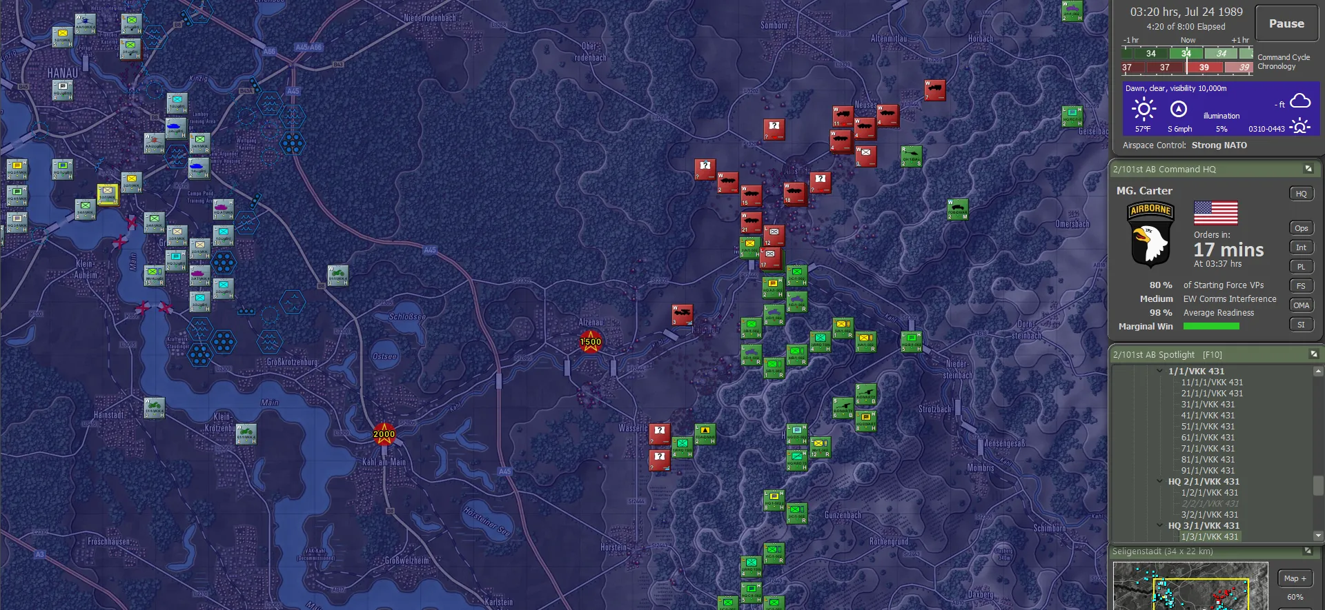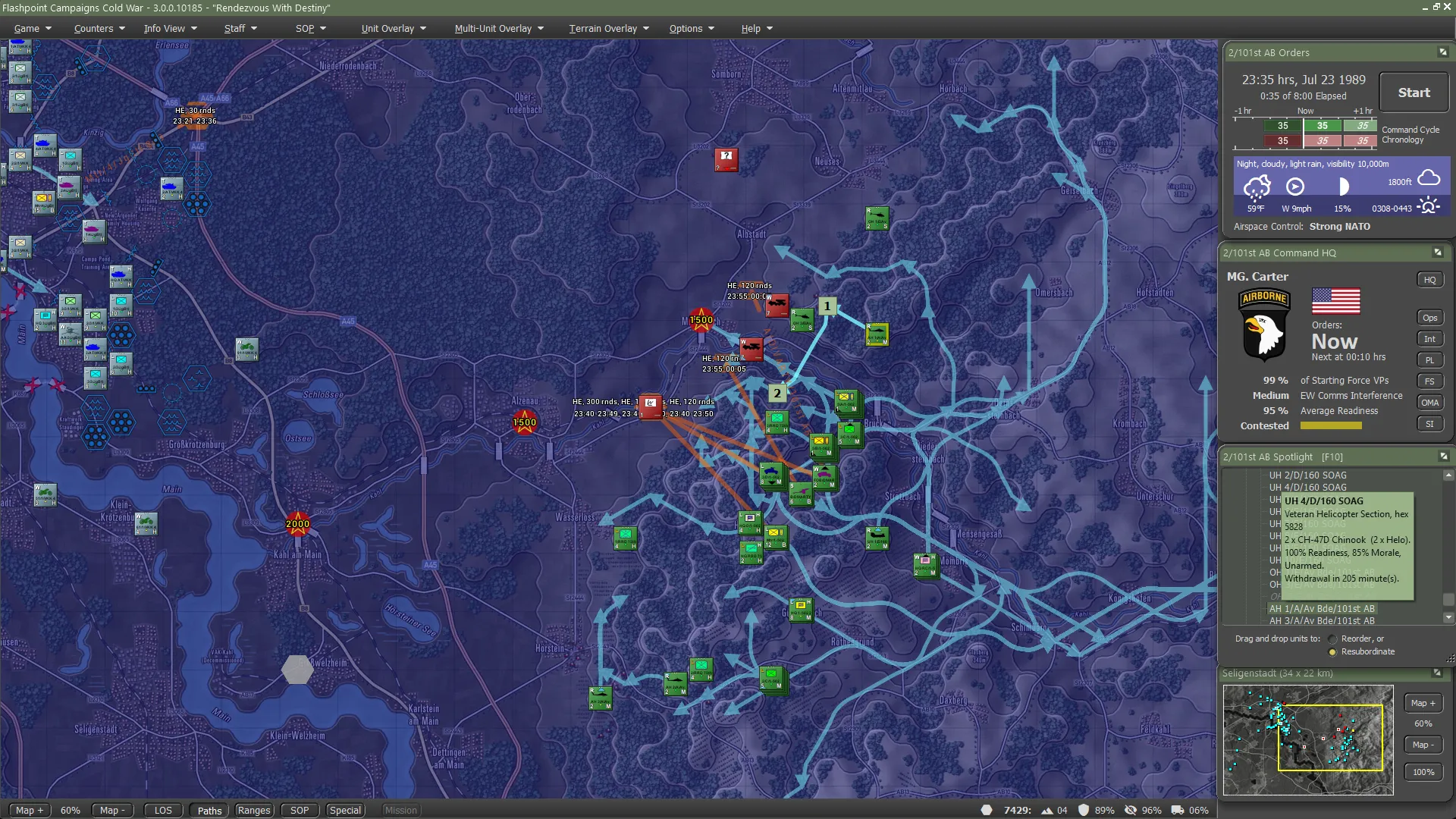 It turned out the Germans actually carried their fair share of the fighting, though this was not visible to the 101st. Between the two forces, including 56 Claims from the Apaches, 736 enemy sub-units had been accounted for, set against total sub-unit losses of 144. For NATO definitely not a gross result. And a brilliant day for the 101st!