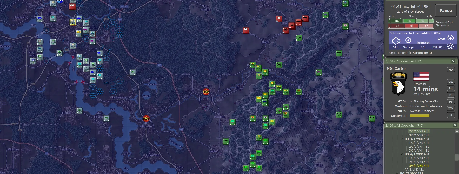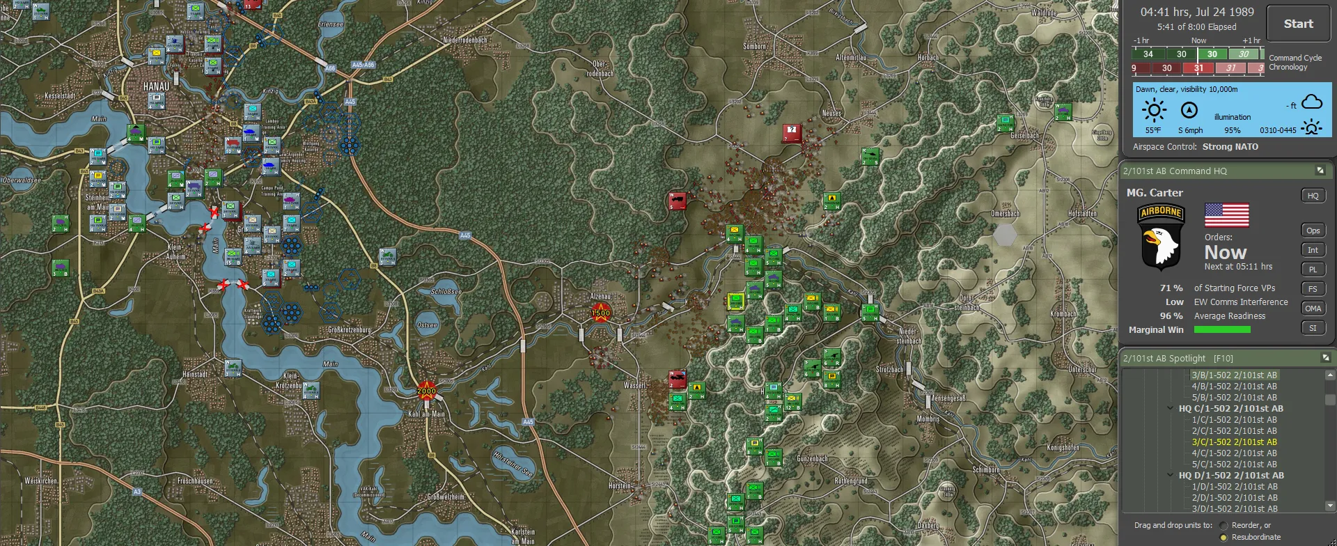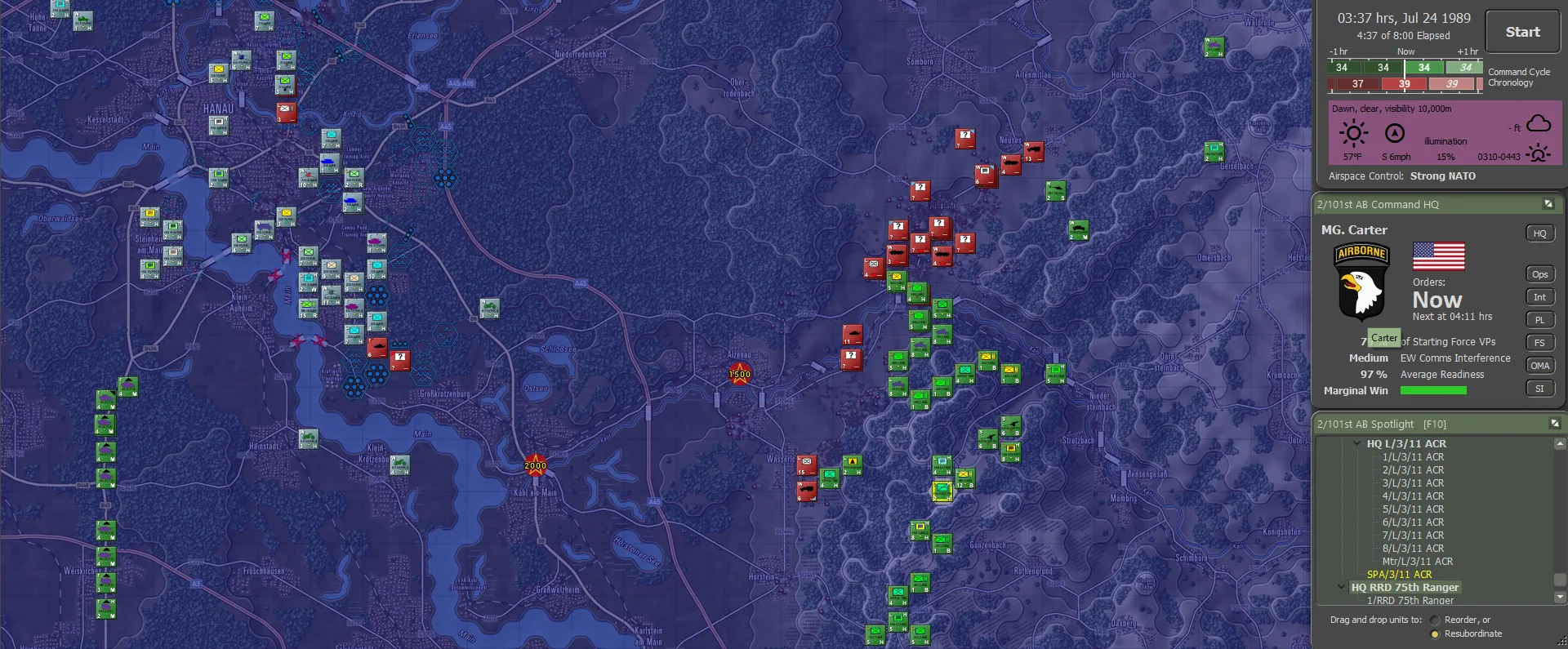 The 1st Battalion of the 502nd was advised of their first task as soon as the 101st unloaded; Soviet rocket batteries were deploying outside Hanau, too close to the Frankfurt HQ to be acceptable; it couldn't be allowed for them to be tempted to use tactical nukes on such a juicy target. The West Germans were desperately holding Hanau with 11 ACR sending a relief column ASAP. Looking at the remainder of the force dispositions... what the hell?
