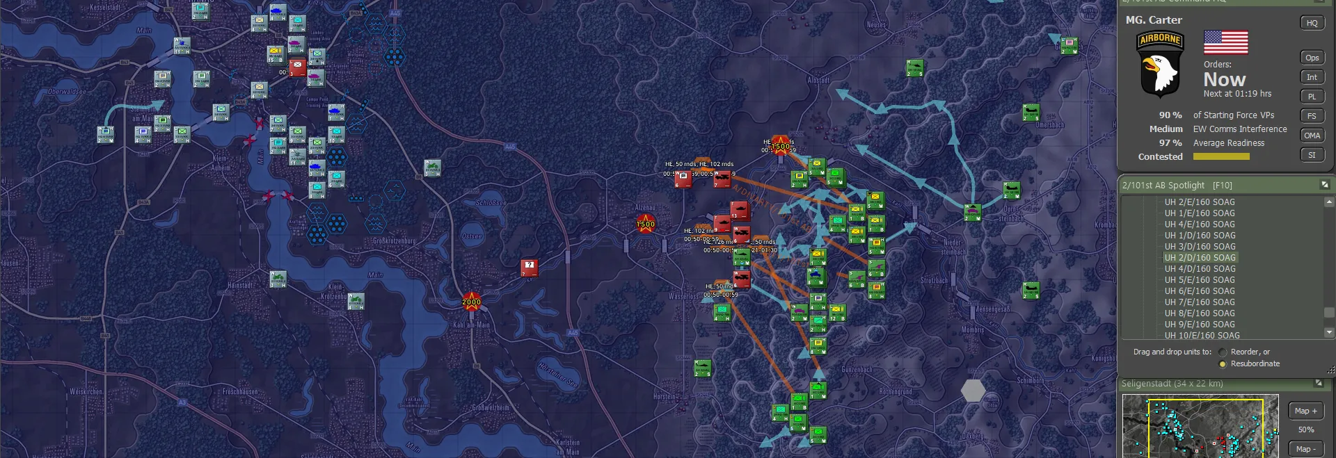 All of the Chinooks reached their LZs with no issue and swiftly unloaded. Orders were given and the 502nd started moving out carefully through the wooded hills over Hemsbach. There was a brief message of enemy movement to the north but no indication of its importance-