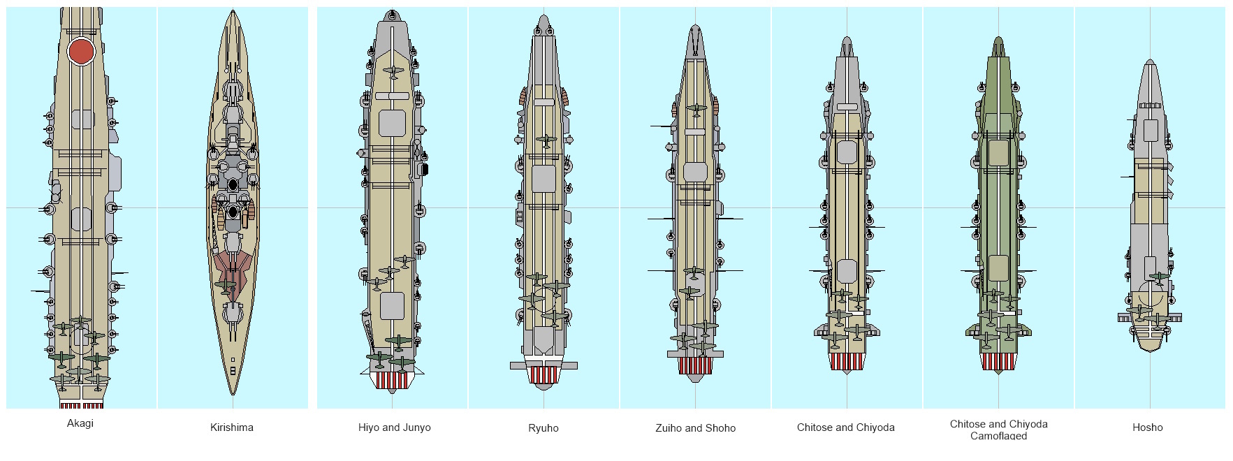 We found that this new ship designer is powerful enough to create ship designs that are both graphically impressive for the perspective we have taken and historical authentic. In fact, our very own contenT designer utilized this improved ship designer to create a range of ship designs that we used for the historical scenarios. We think that these authentic designs will only serve to help with player immersion when engaging with the historical content of Expanded Battles. Here are but a few examples of some of the historical World War II ship designs we have included with the game, including ships of the Kido Butai of the Imperial Japanese Navy and the Kriegsmarine.