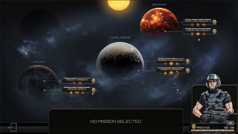 Once a Battle Group is selected, the Galaxy War screen allows you to choose your next mission. These missions can take you to the base game's desert world, Kwalasha; the volcanic planet of Gehenna; or the cityscape of Managar on planet Varuna. The last two are available only if you own the respective DLCs. Each planet presents its own distinct set of maps, mission objectives and unique Arachnid threats, ensuring every mission feels fresh and challenging.